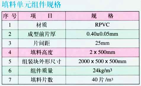 双向波填料为薄膜式,其片形由正弦波和梯形波分段错位的直波组成。提高了气水的扰流和下泄速度减缓,提高了填料的散热特性,由于增大了通孔面积,保证了胶球畅通,提高了防泥垢堵塞的能力,其热力特性和阻力特性与引进的复合波填料相当,具有良好的冷却效果。